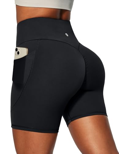 Heathyoga 6" Butt Lifting Biker Shorts Women with Pockets Workout Shorts Women Tummy Control Yoga Shorts Spandex Shorts Gym Black