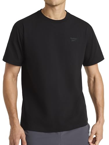 Reebok Men’s Embroidery Crewneck T-Shirt, Standard Fit, Lightweight Stretch Cotton-Blend Jersey Fabric, Black, Large
