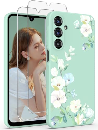 Yucenx for Samsung Galaxy A17 5G Case, Girls Women Florals Liquid Silicone Phone Case, Shockproof Anti-Scratch Soft Protection Case with 2X Screen Protectors for Galaxy A17 5G (Hibiscus)